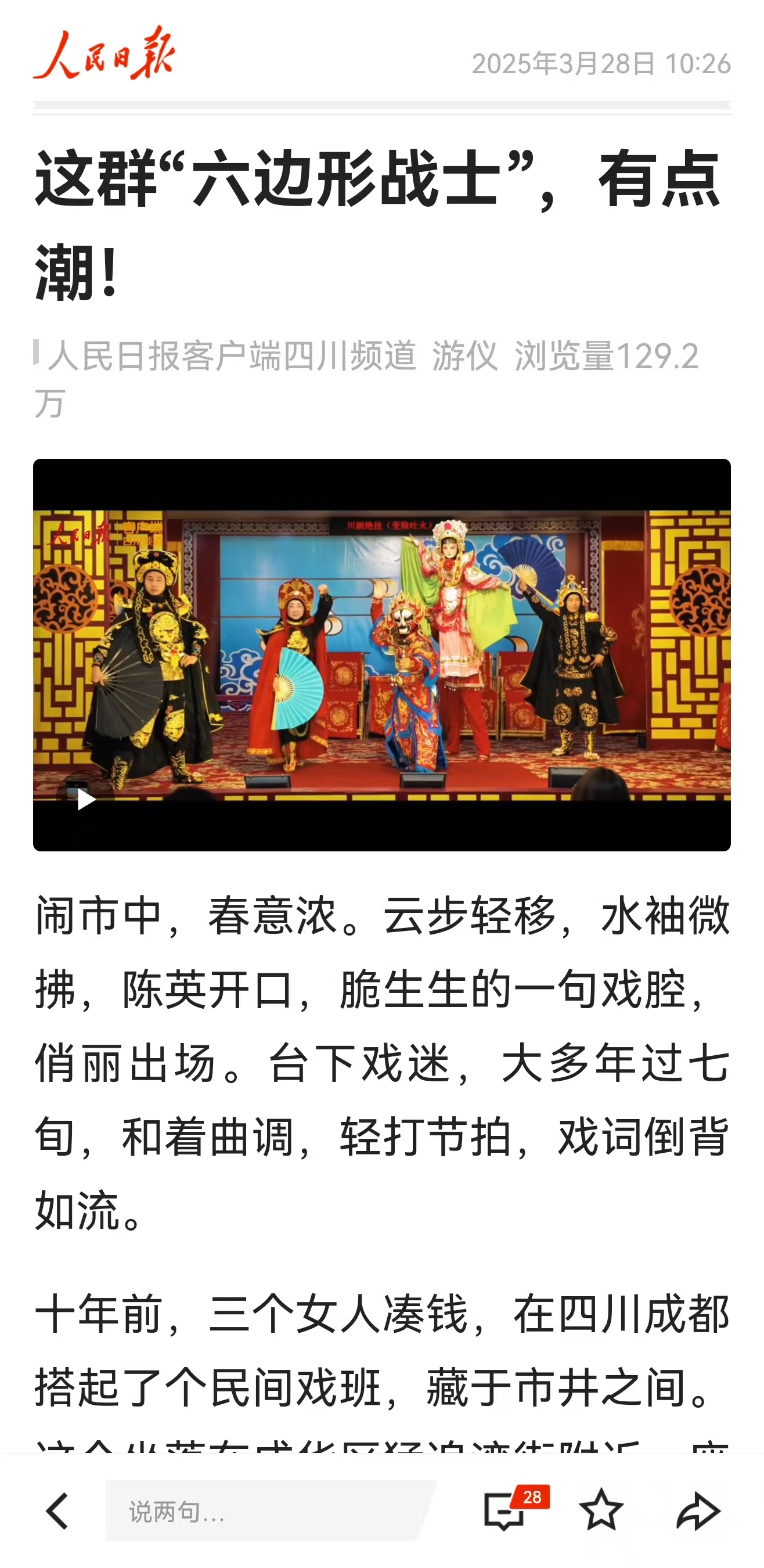 “三花”川劇團,好戲在后頭陳英開口,脆生生的一句戲腔,俏麗出場。台下戲迷大多年過七旬,和著曲調,輕打節拍。
