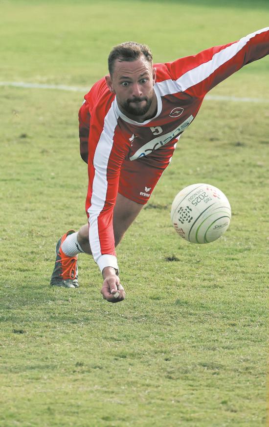 瑞士對陣巴西浮士德球比賽中,瑞士隊員飛躍救球。