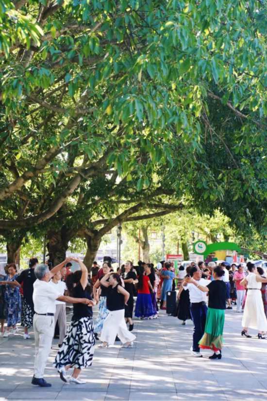 在三雅園,一群老人隨著音樂翩翩起舞。“這個廣場建得好,場地寬敞平整,晚上燈光亮堂。我們每天來活動筋骨、跳跳舞,既鍛煉身體,又結交朋友,晚年生活多了很多樂趣。”一位老人笑著說。