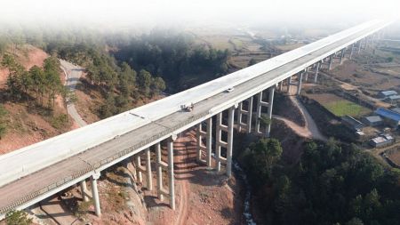 1月9日,西昭高速公路SG8標段架梁完成進入路面施工階段。 中鐵八局供圖