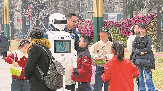 正在巡邏的機器人吸引了不少小朋友的關注。