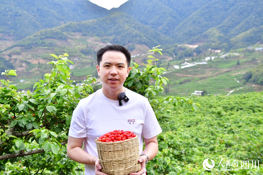 中國斯諾克名將肖國棟來到德昌縣角半村體驗摘櫻桃。人民網記者 朱虹攝