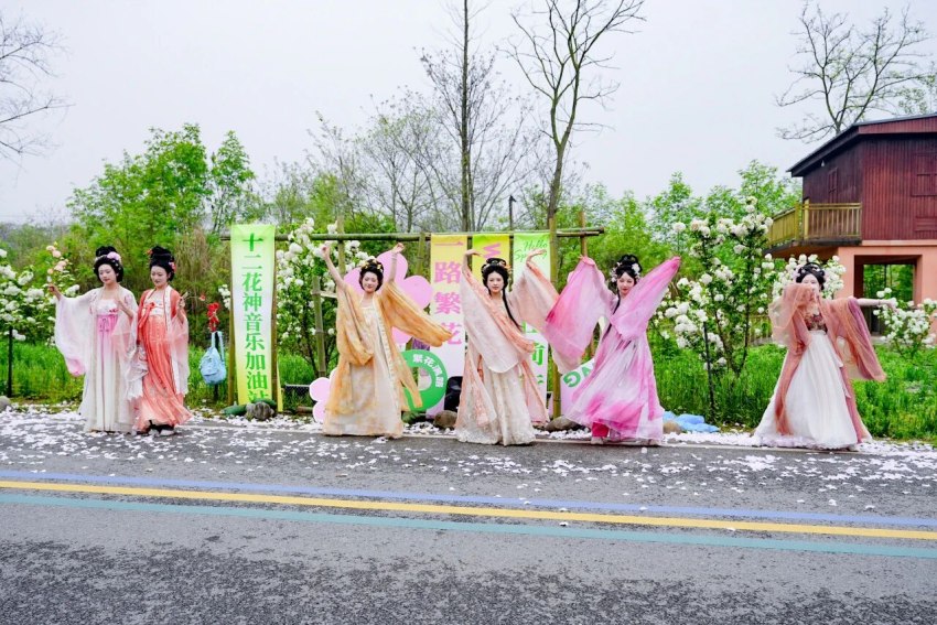 賽事在細節處巧思不斷,為奔跑之旅增添別樣趣味。賽道沿線,身著傳統服飾的十二“花神”以古典禮儀為跑者加油助威,成為跑友們打卡互動的熱門點位,也讓傳統文化在運動場景中煥發新活力﹔熱情的啦啦隊全程吶喊鼓勁,共富咖啡、本地藍莓等特色補給,更讓跑者在奔跑中沉浸式感受溫江的風土滋味。