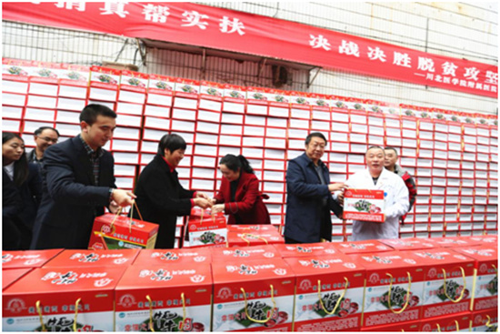 为拓宽帮扶村产业销路市场,医院深入开启“以购代捐”产业扶贫模式。2017至2020年,医院职工积极购买尤日村牦牛肉、干香菇、野生菌,马鞍山村龙凤小米,松垭庙村鲜活土鸡,根布夏村牛肉酱等特色产品,共计240余万元。在医院维康生活超市设立扶贫产品专柜,与遂宁白芷种植专业合作社达成中药材销售协议,解除销售后顾之忧。