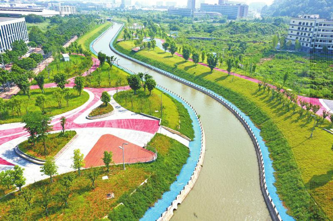 生态治理与“海绵城市”建设并驱,形成“乘数效应”。鱼咡湾公园汛期可化身“蓄洪库”,临时滞纳绿心内山洪水,缓解下游城区内涝压力,增强城市雨洪韧性。