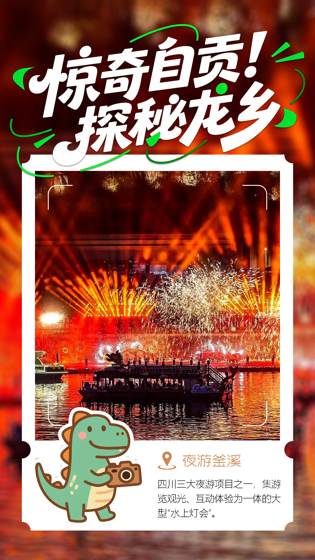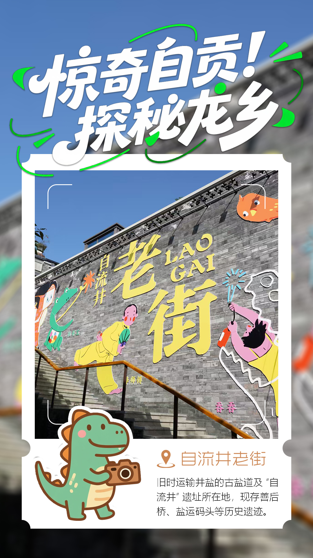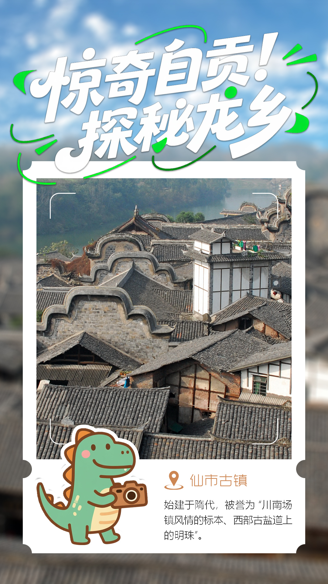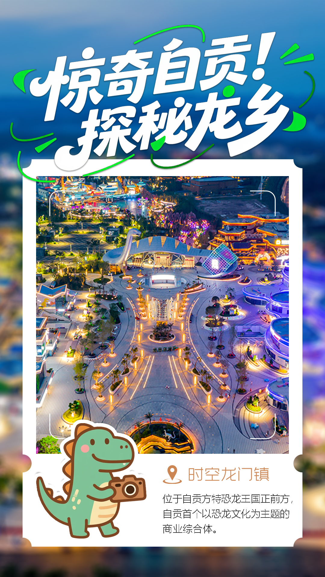 时空龙门镇:与自贡方特恐龙王国、自贡恐龙博物馆形成“一馆一园一镇”的自贡恐龙文化旅游核心景区,可就近打卡自贡方特恐龙王国、大山铺吃兔一条街、龙艺街口袋公园。