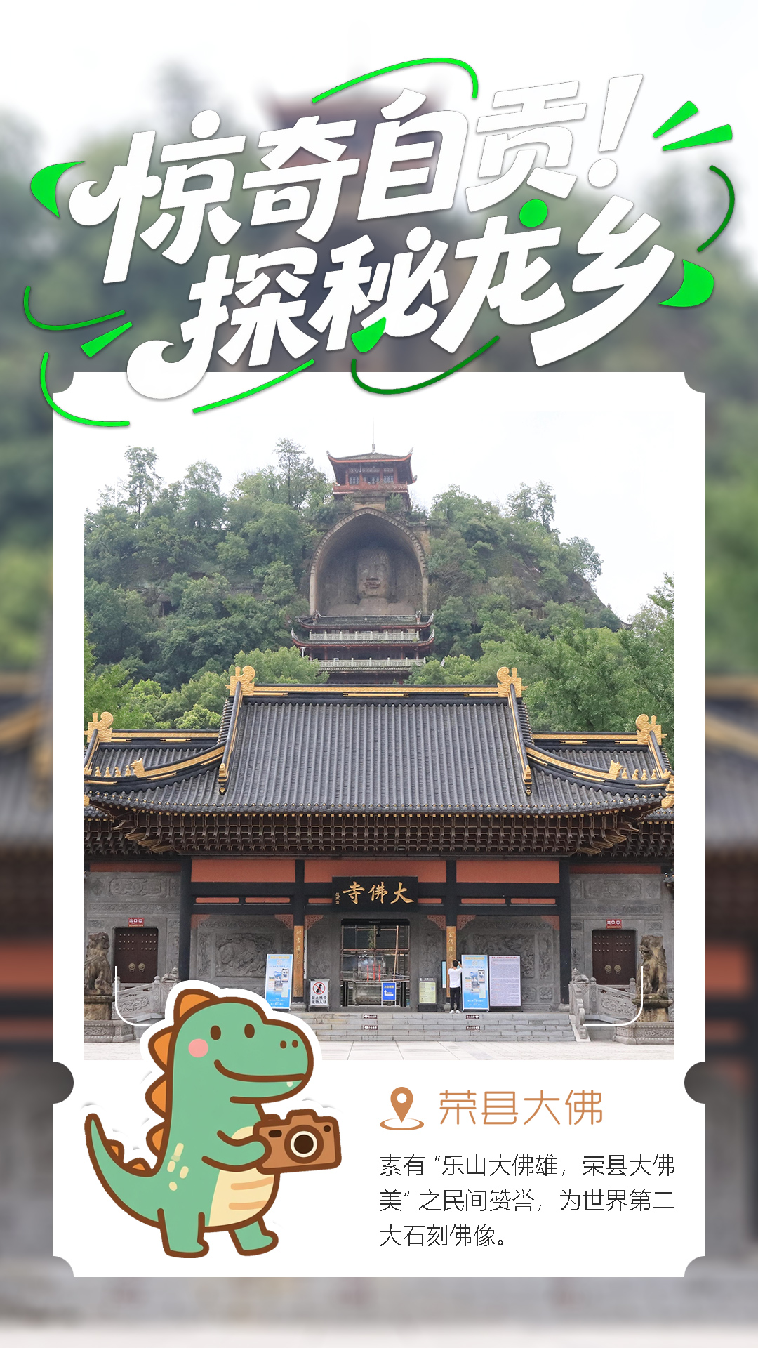 荣县大佛景区:汇集镇南塔、观音阁等历史古迹,融合自然山水与佛教文化,展现了“一城三佛”的独特文化风貌,还可打卡“荣州三绝”。