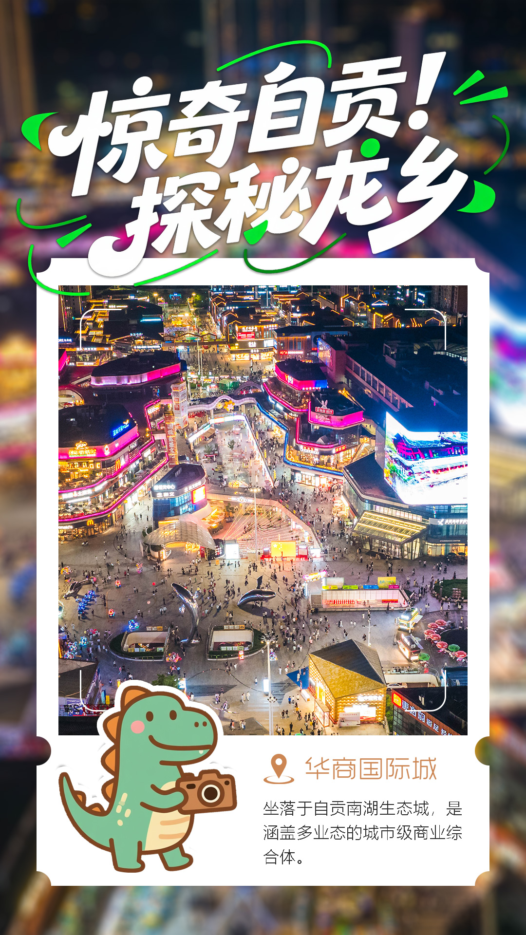 华商国际城:10月1日,将举行“恐龙主题大巡游”,设置恐龙、美食主题方阵,自贡特色美食可在此一站式打卡,还可就近打卡南湖公园、高峰公园。
