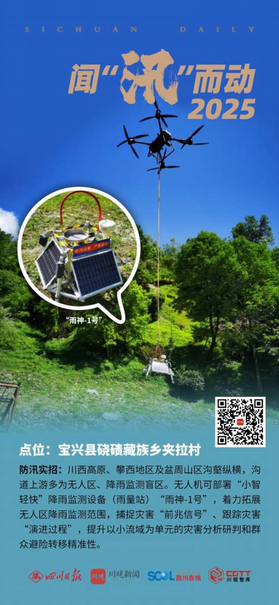 王暾补充,由于川西高原、攀西地区及盆周山区沟壑纵横,有些地区森林覆盖率较高,地广人稀、地势陡峭,安装传统固定式雨量站有一定难度。但这些地区往往环境多变、致灾机理复杂、成灾因素交织,因此更需要“渐进式”动态预警。无人机可部署雨量站,正是为了弥补这一灾害防御突出短板,以提升临灾监测、“渐进式”预警的准确性,为居民提前转移争取更多时间。
