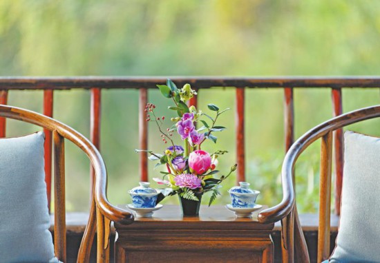 怀古亭里,盆景和盖碗茶,透着浓浓的四川味道。四川日报全媒体记者 赵明 摄