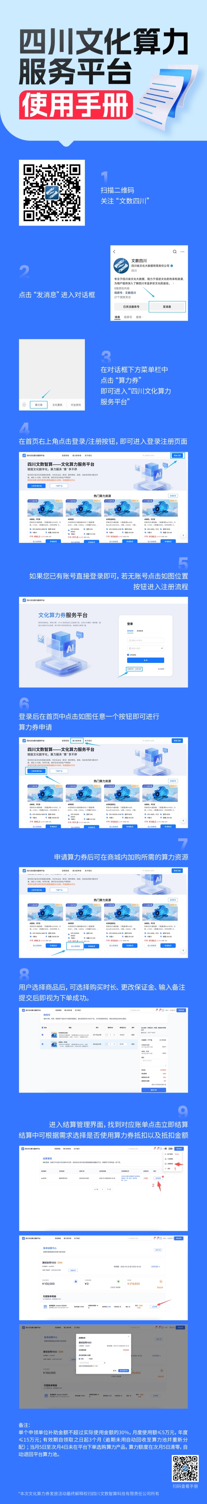 据了解,本次发放采用“在线报名、平台审核”的方式。文化企业(单位)通过“文数四川”微信公众号-菜单栏-算力券选项,进入“四川文化算力服务平台(https://wssl.scws.cn)”领取文化算力券,注册认证并审核通过后激活额度。发放时间从2025年12月18日起,发完即止。