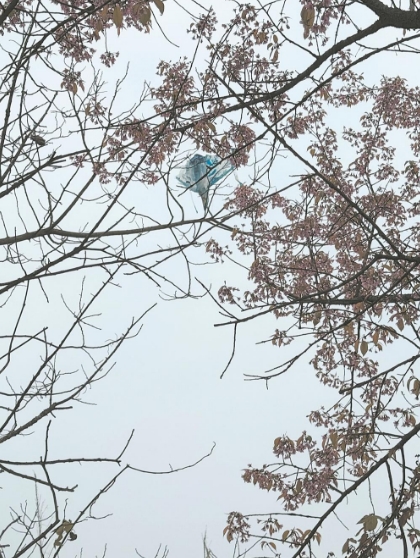冬樱树上,缠绕着已褪色的断线风筝。