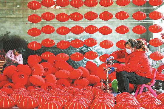值得一提的是,随着灯笼产业的壮大,企业还解决了农村部分剩余劳动力就业问题,为村民们提供了就业机会。“2015年把厂子迁回老家,就是想让乡亲们在家门口也能挣到钱。”鸿发灯笼厂创始人陈洪告诉记者,如今,120余名村民常年在灯笼厂打工,实现了家门口就业,增加了家庭收入。